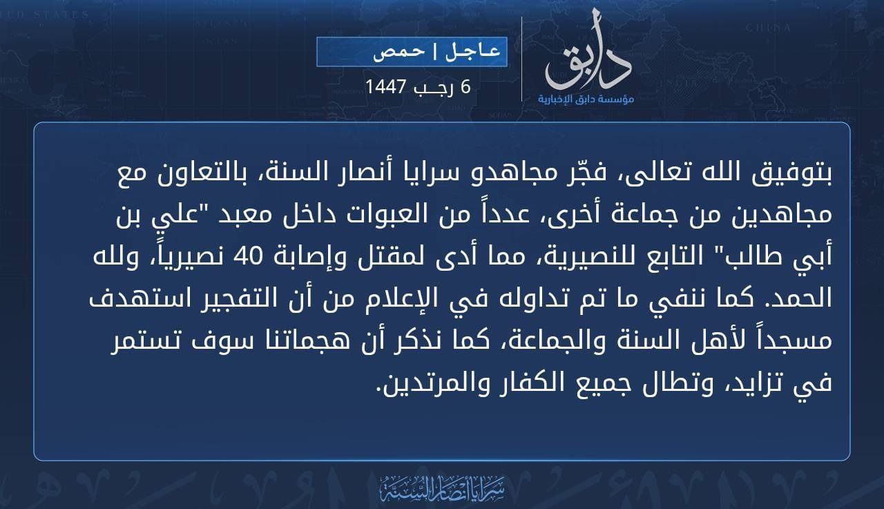 ماذا نعرف عن "سرايا أنصار السنة" التي تبنّت التفجير داخل مسجد في حمص؟